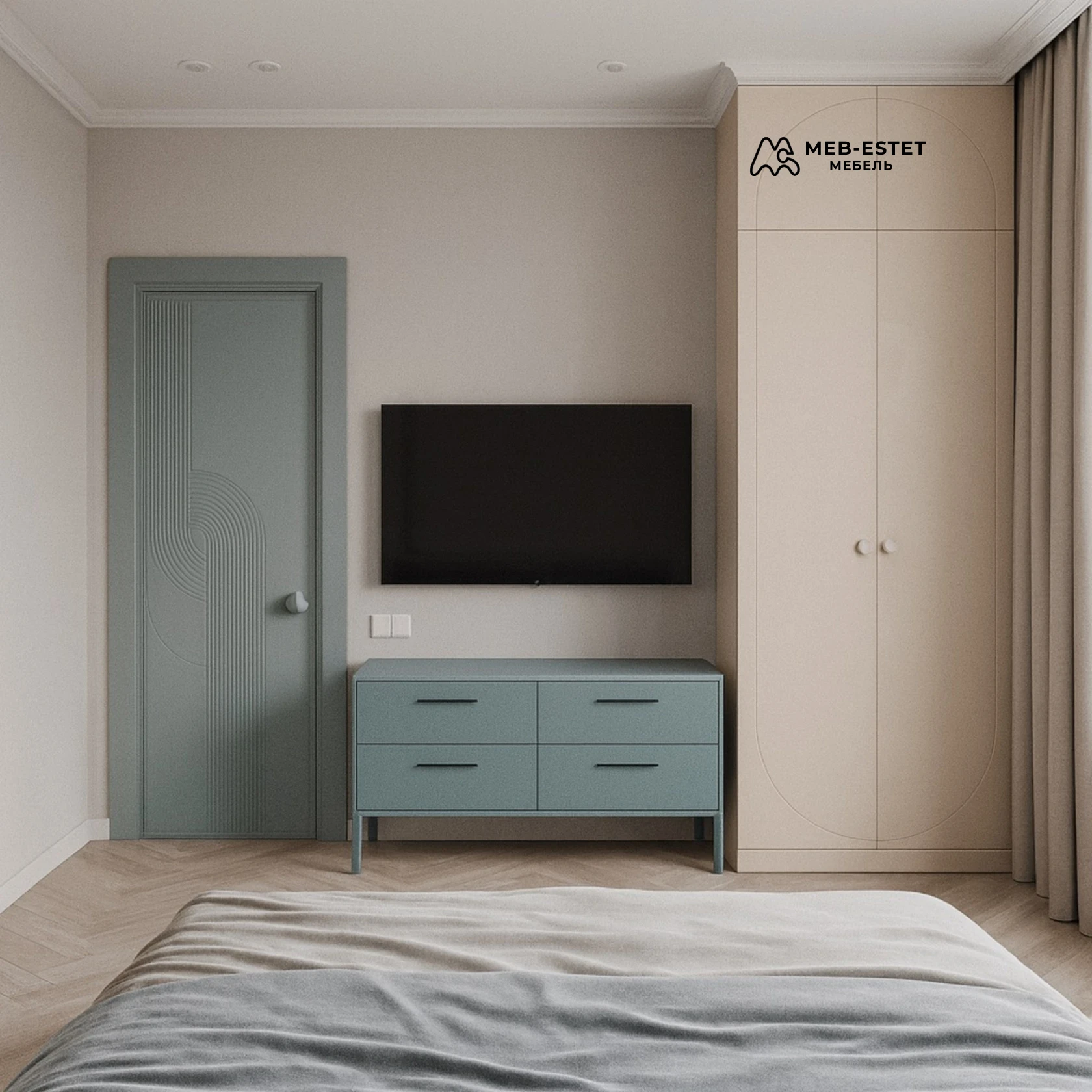 ЦветБежевая мебель в спальню / Голубой