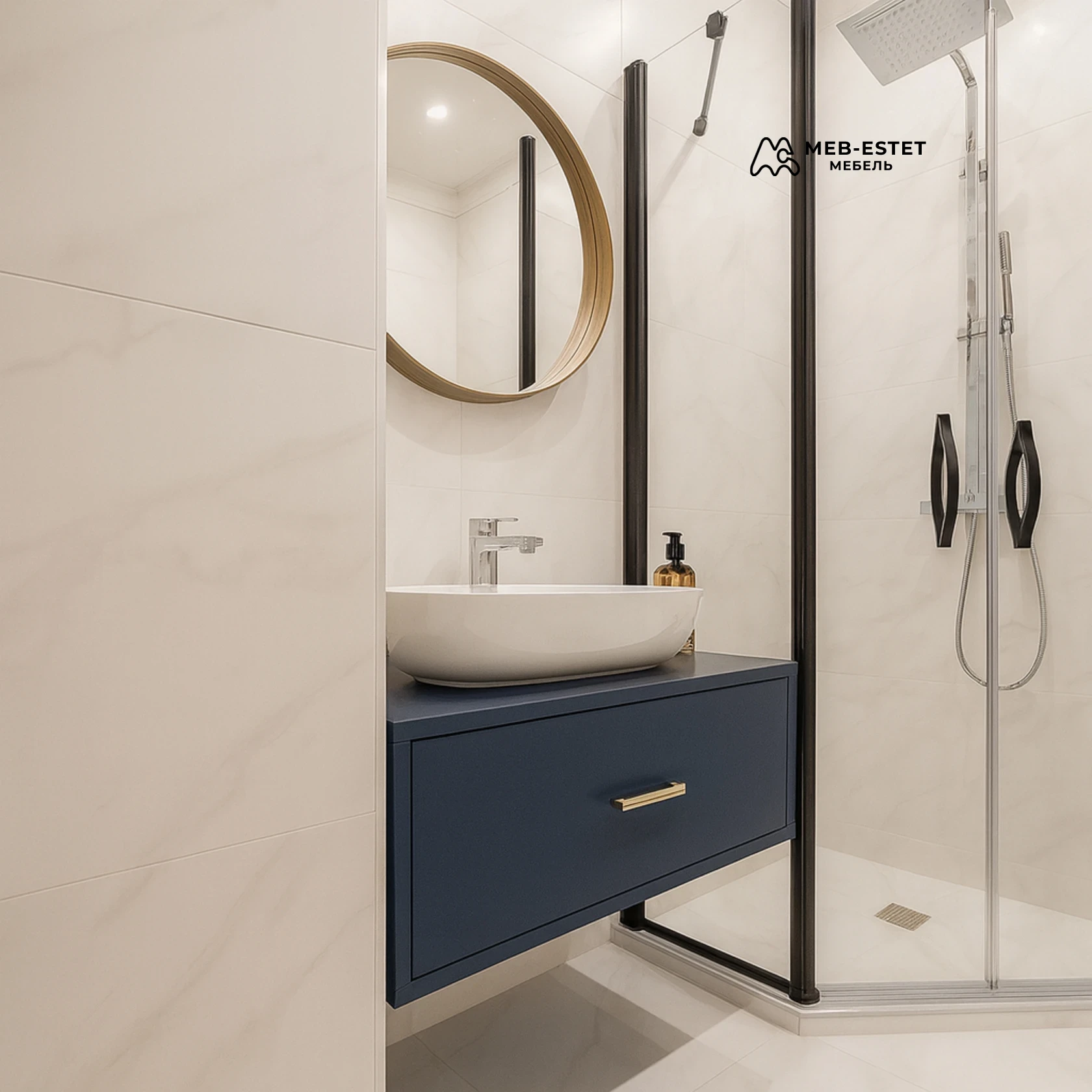 Подвесная тумба под раковину — компактное решение для современной ванной комнаты. Корпус из МДФ с матовой поверхностью, глубокий выдвижной ящик на надёжных направляющих, эстетичная металлическая ручка и вырез для сифона обеспечивают удобство использования.