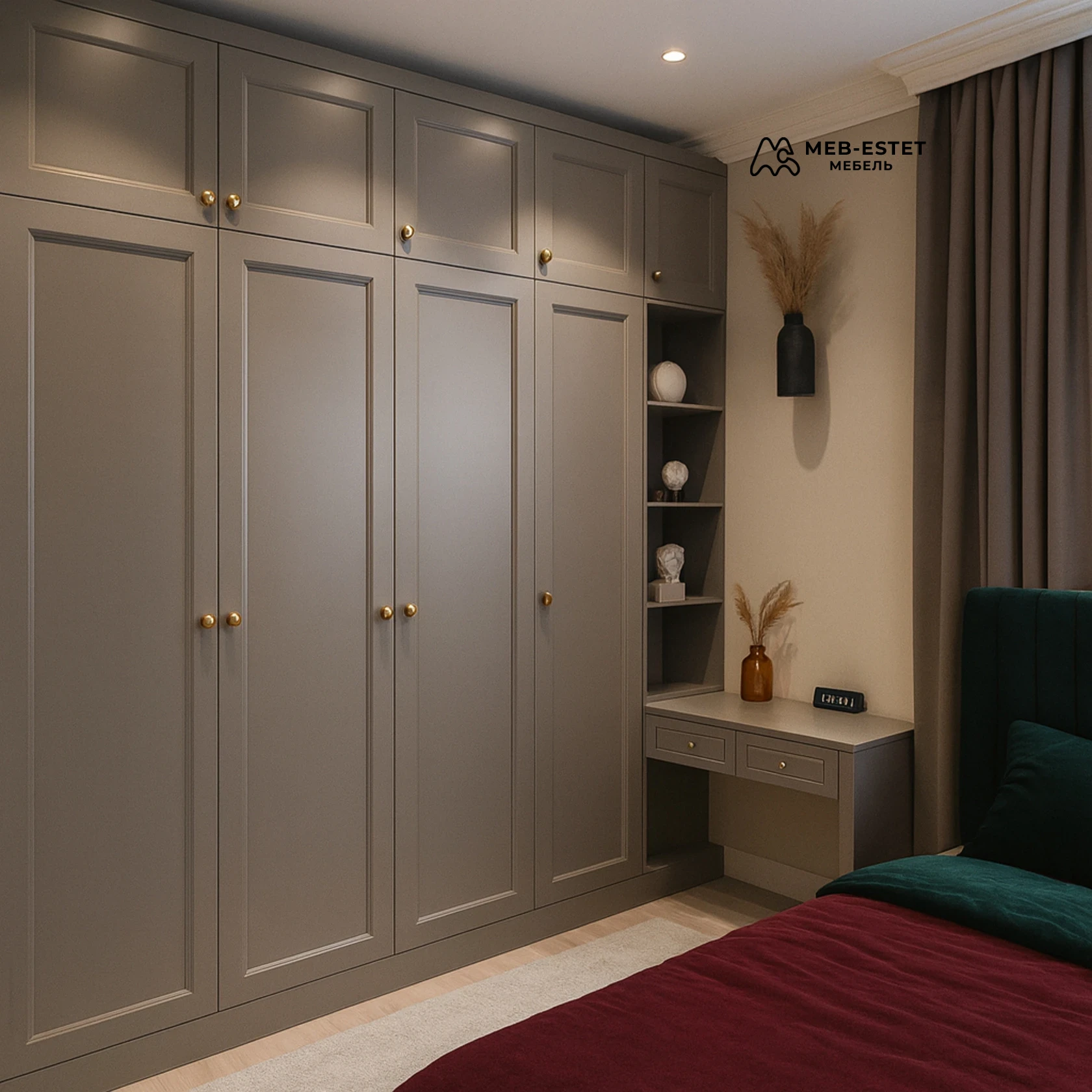 - Премиальные латунные ручки, аккуратная отделка плинтусом и карнизом